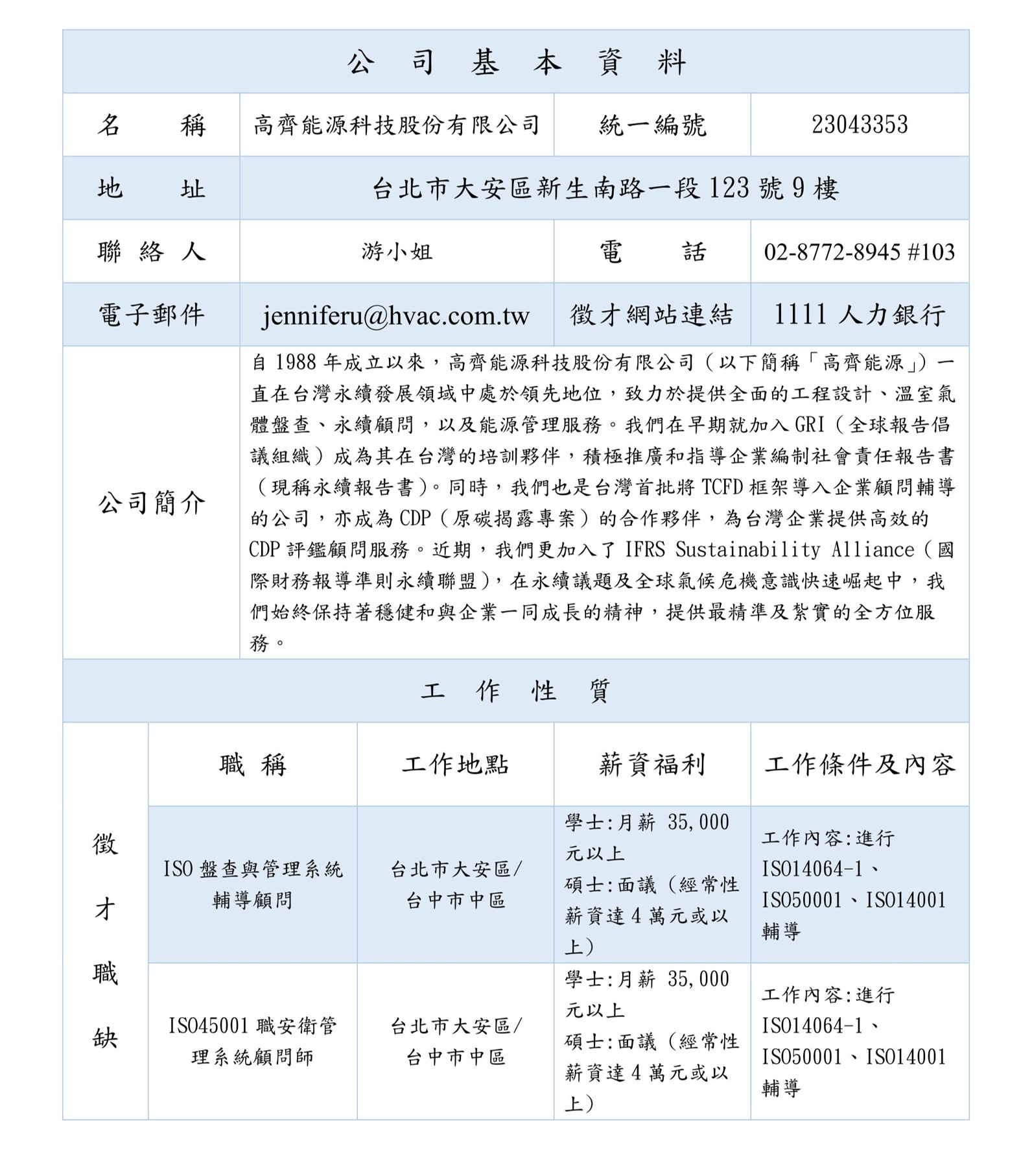 【徵才】高齊能源科技股份有限公司徵才資訊